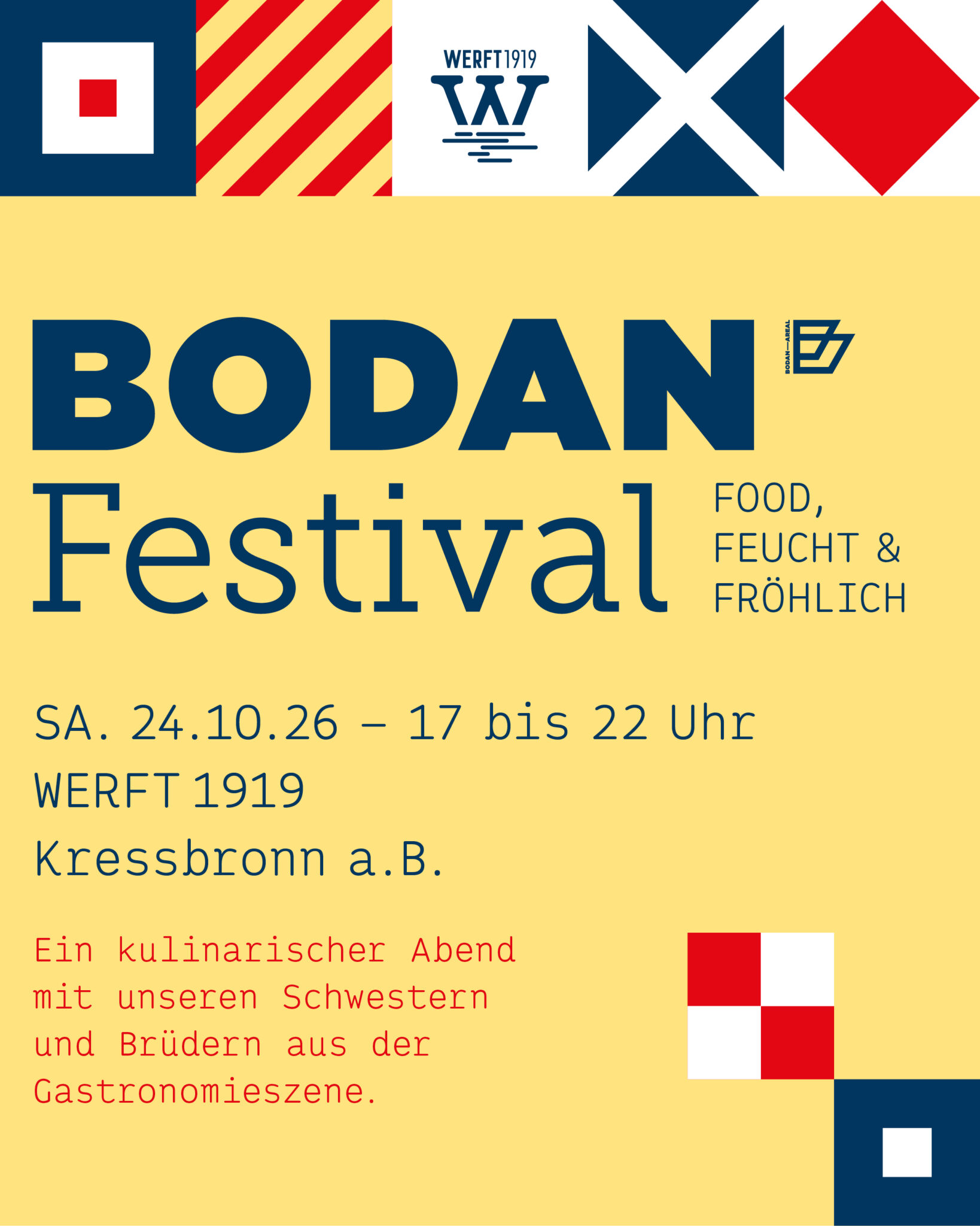 wir wollen euch zum Revue unseres Bodan-Festivals am Samstag, den 24.10.2026 begrüßen. Dieses mal in einem kleinen aber feinen Rahmen. Es wird ein Abend voller Genüsse mit Freundinnen und Freuden der Werftbuben.